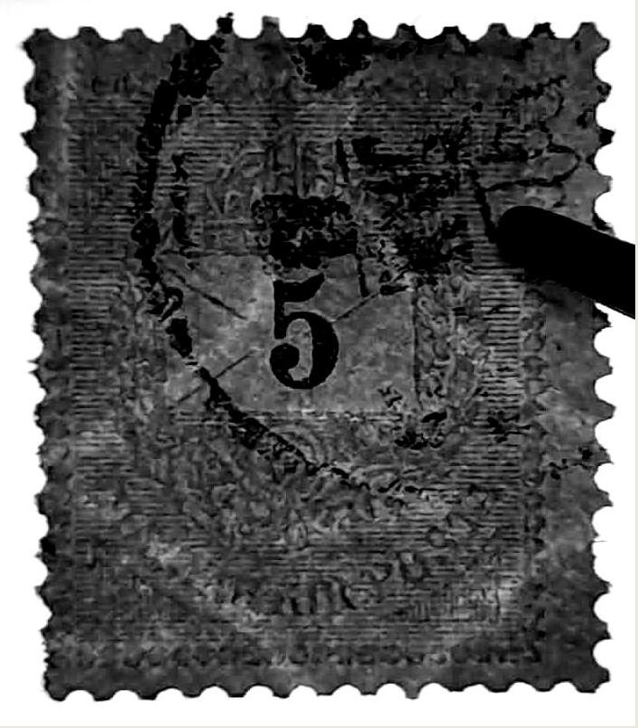 1881. 5kr, keskenyre fogazva (18 mm !!!) – hegyes fogazással