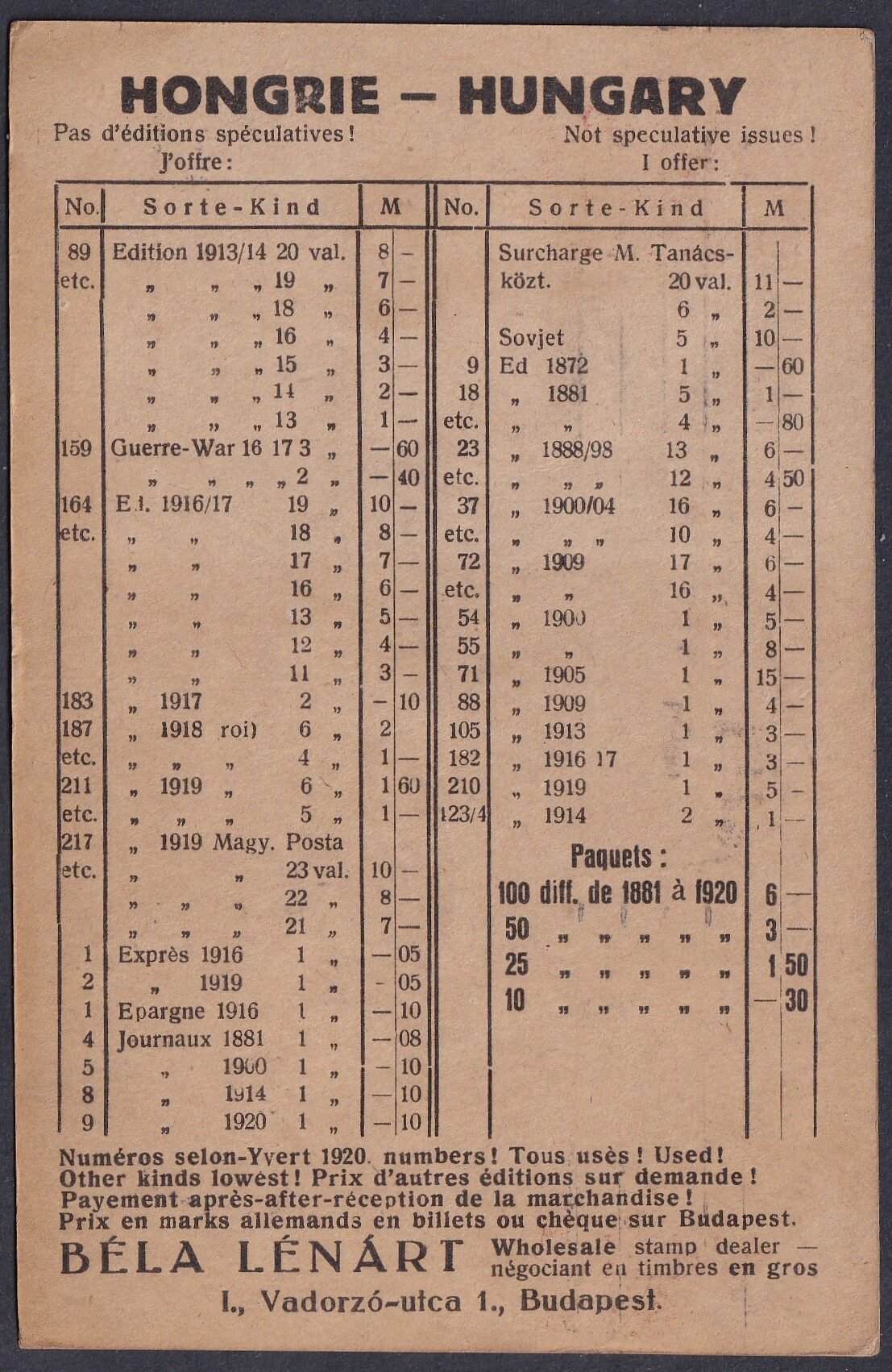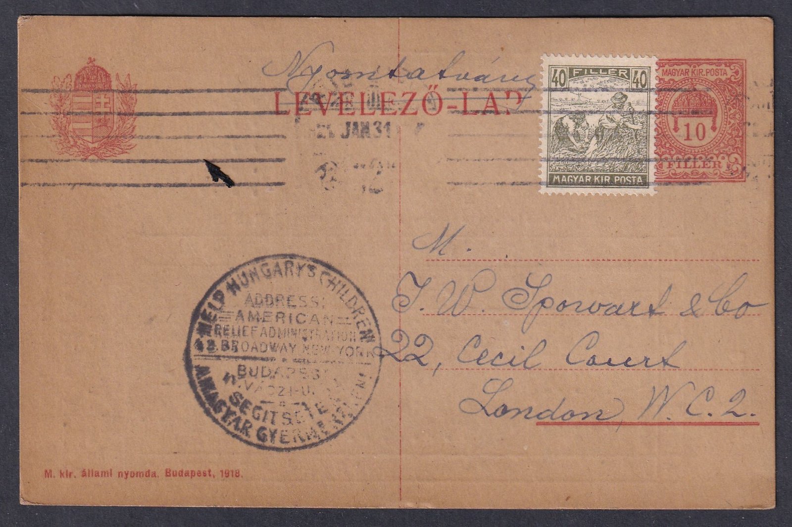 1921-ben Londonba nyomtatványként feladott, díjkiegészített, előrenyomtatott levelezőlap – nagyon ritka küldemény típus!