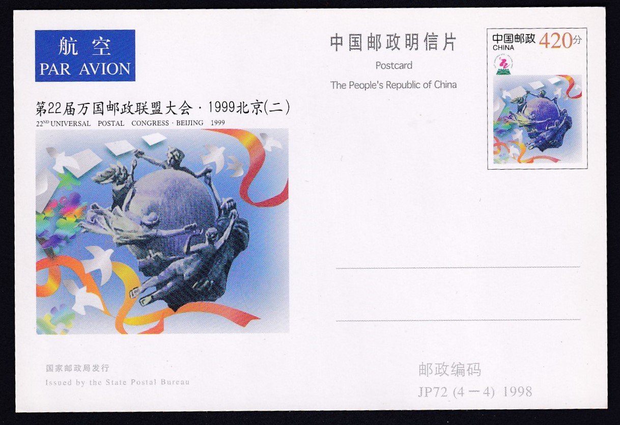 1999. Kína, díjjegyes levelezőlap